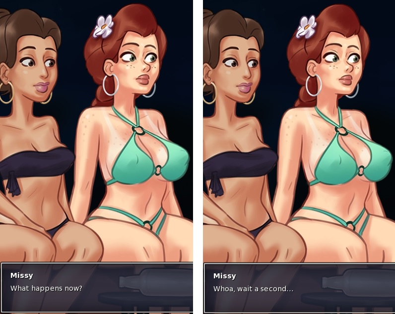 | Description | Version 0.16.1. See attachment. On the beach, at the beginning of the foursome sex scene, Missy speaks but her lips stay closed. | ||||