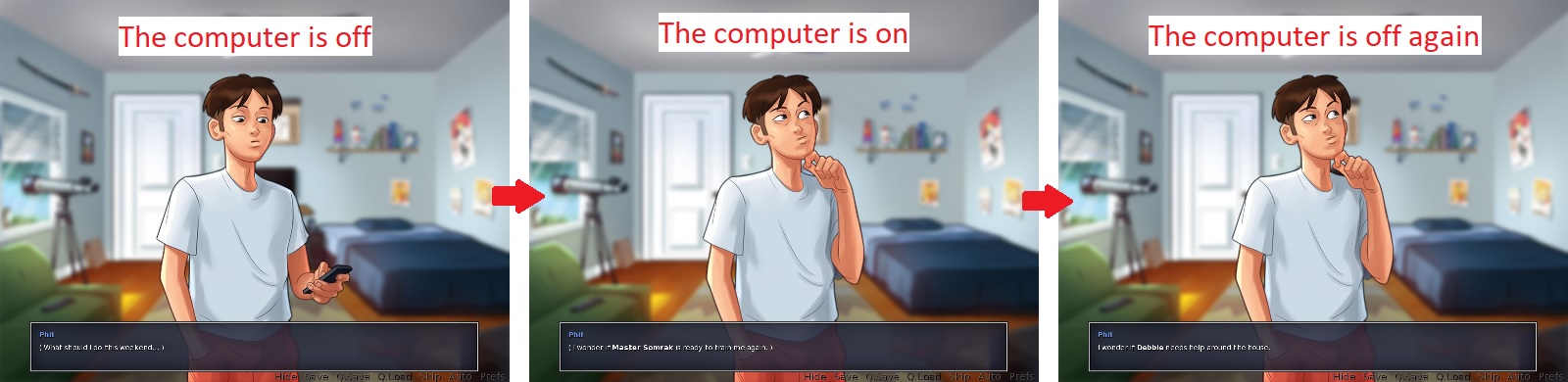 3. At the awakening, MC reminds what to do.