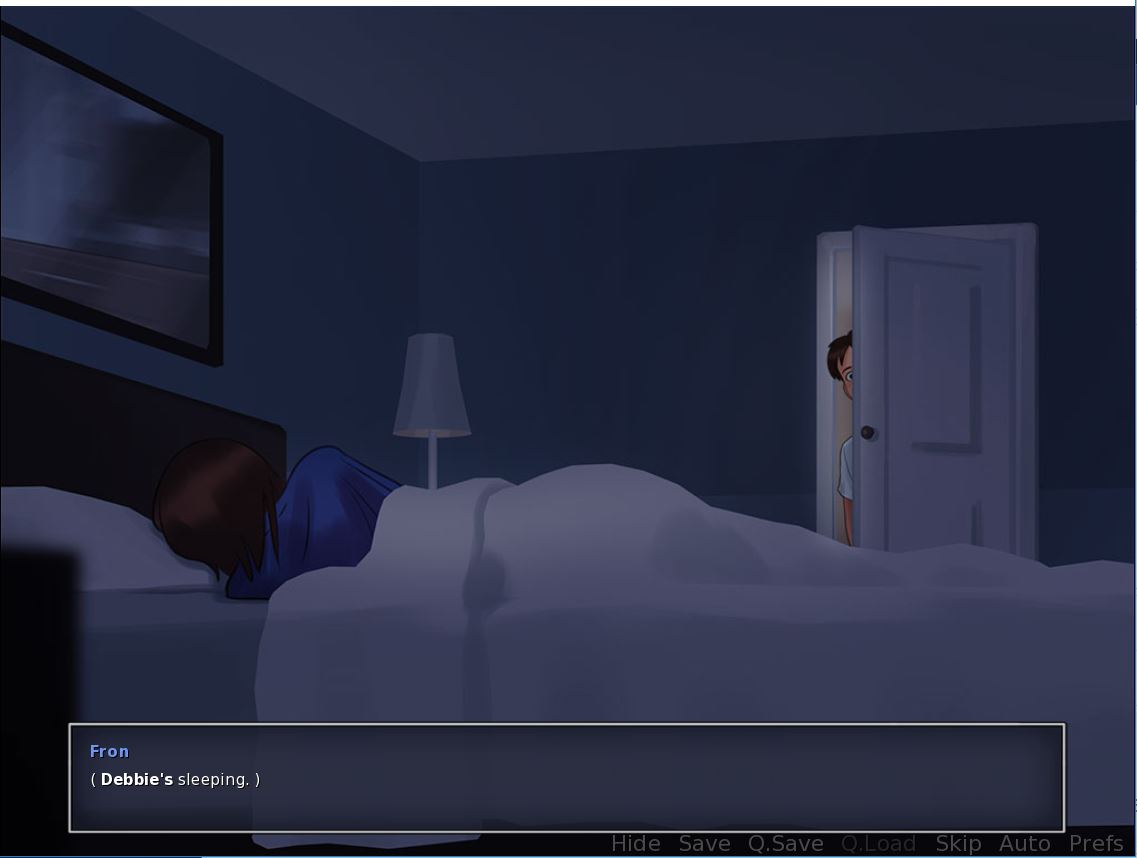 | Description | When you come in early stage to Debbies Room at night (when you suppose await Roxxy to come, where she isnt coming the night), MC goes quietly into her room, yet she seem not there, picture seem missing or wrong placed. Happens in Version 0.17 not 0.16! | ||||