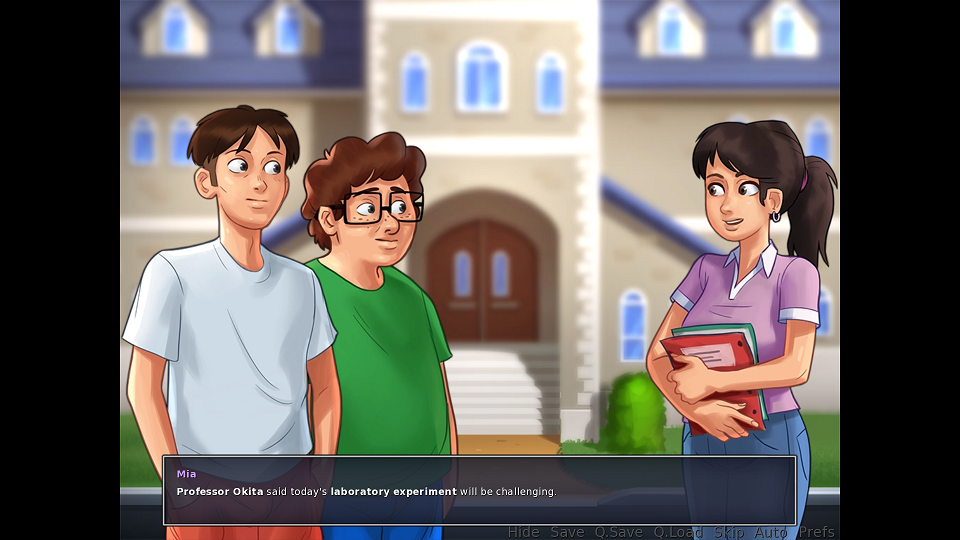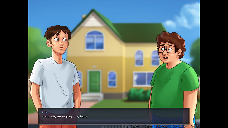 | Description | I'm at the point where I need to get Erik to sub for Kevin at the cafeteria so that I can train my strength. The problem is that the following happens: 1. Every time I go to his house, the sequence that occurs when we go to his house for the FIRST time triggers. Over and over again. (See pics 1 + 2). 2. Now, I can't even enter his house, as he says "Shouldn't we be going to school". THEN, when we go to school, the scene with Nia triggers again. And then it continues to trigger scenes from our first day of school, even though I've already progressed past that point. (See pics 3 + 4). 3. Finally, when all the dialogue is over, the map locks. I cannot leave the school. To prove this, I've attached images that show how the school looks like if I DON'T go to Erik's house, versus when I do. The difference is pretty obvious. (See pics 5 + 6). I had something like this happen to me with the previous update as well. I've checked forums and not everybody is getting the same error as I am. Can somebody check my savefile and help me troubleshoot? (Also attached below). | ||||