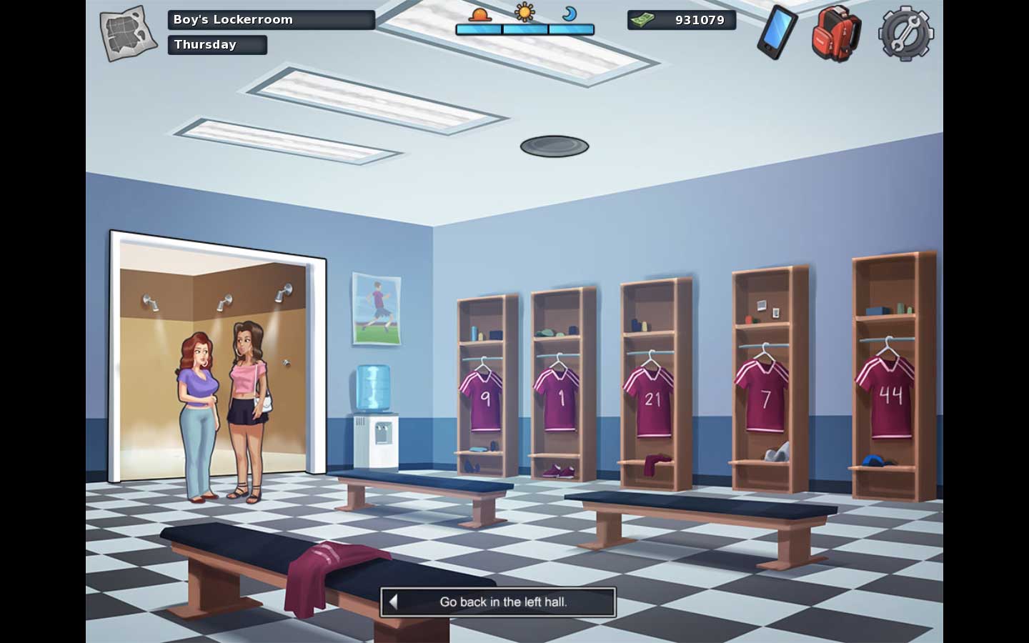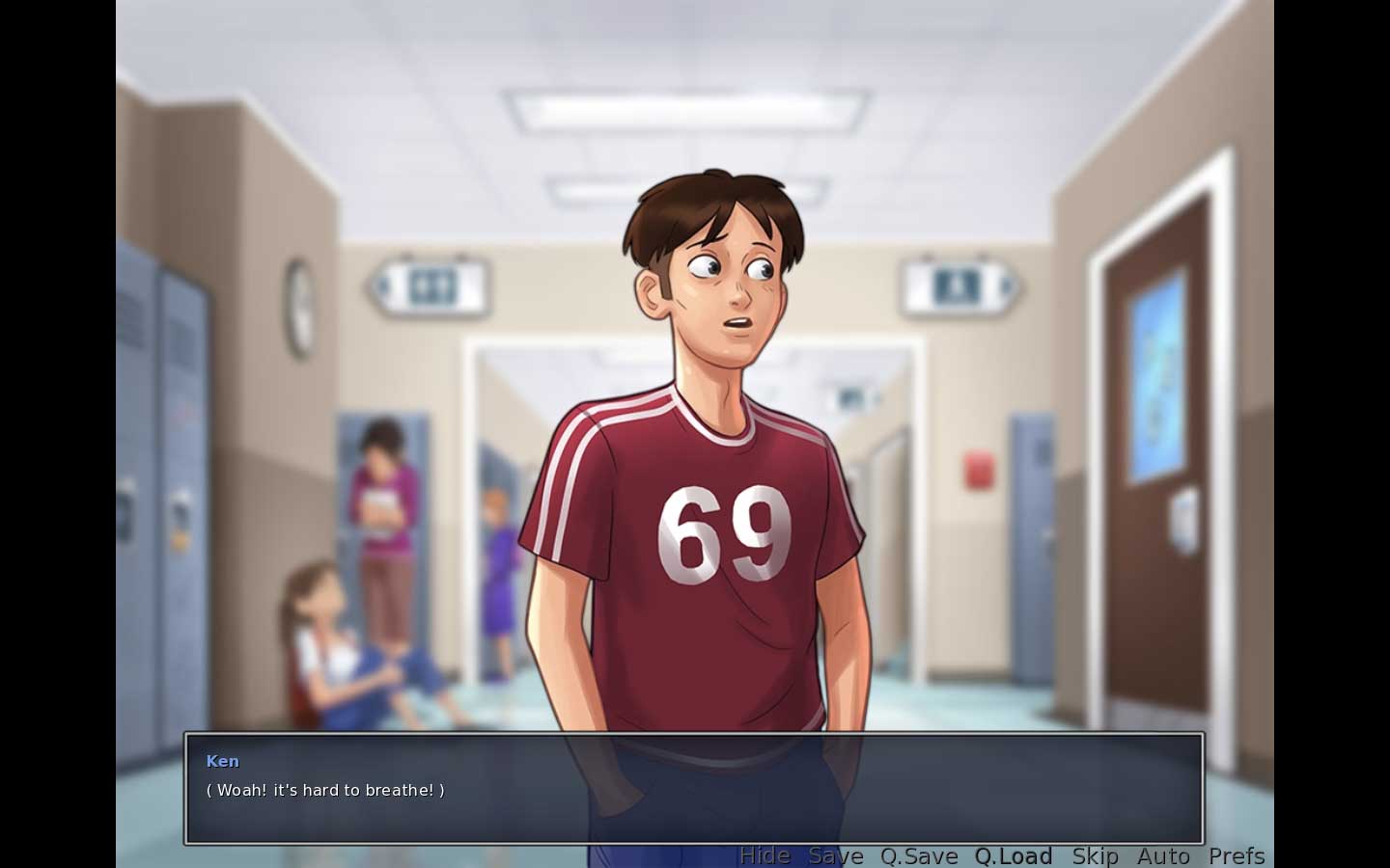 | Description | After talking with Missy and Becca in Boy's Lockerroom for having a shower, MC always loops with "Woah! It's hard to breathe" lines from then on. It's not a big deal though, but then the locker room stucks with Missy and Becca standing there too. When MC tries to sneak in and steals the 3rd book from Martinez, the scene gets back to Missy and Becca standing there and keep looping, so that I can not move forward. I don't know how to retrieve the save file, can you show me? | ||||