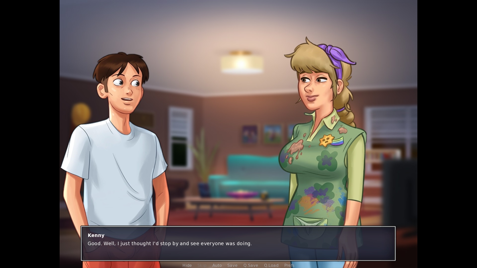 Sex with Debbie in her bed: When breastfeeding, the MC says: "Can I kiss your breasts?." > remove the full stop at the end When cumming outside after the cowgirl position Debbie says: "It's everywhere!." > remove the full stop at the end Sex in the basement: "Hehe, Yeah. That's definitely a perk!" > Yeah should be lower case, *not* with a capital Y |