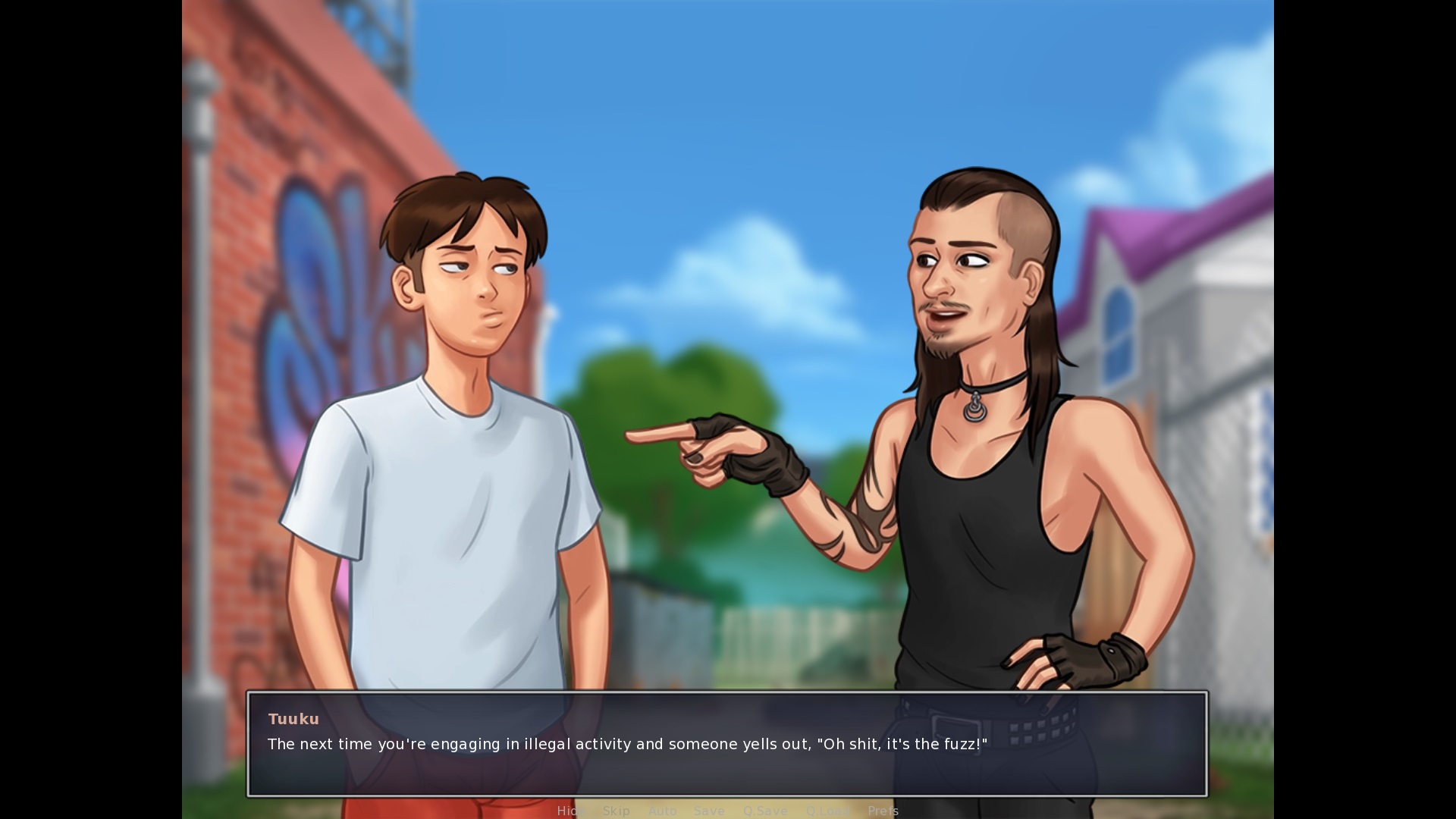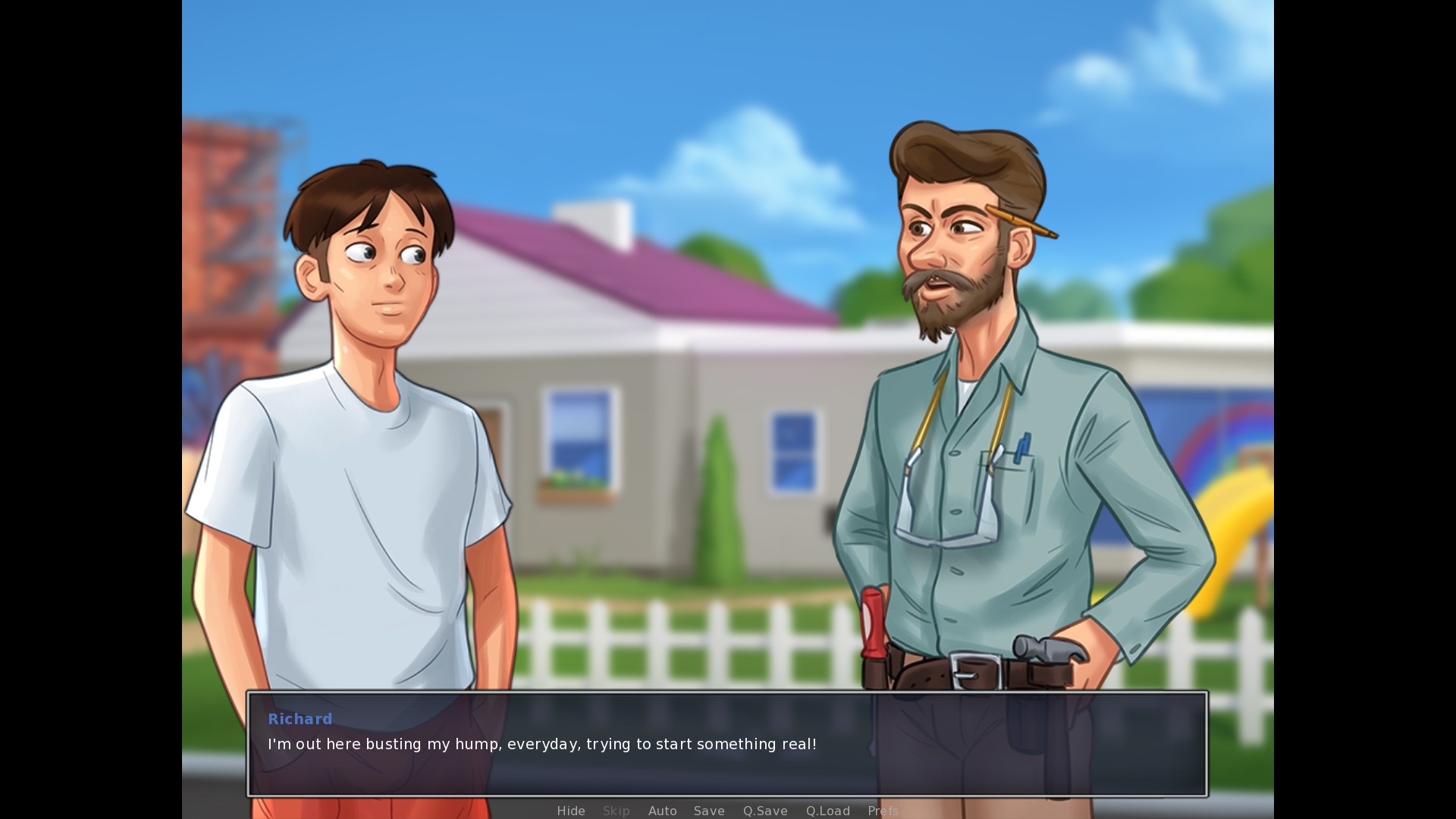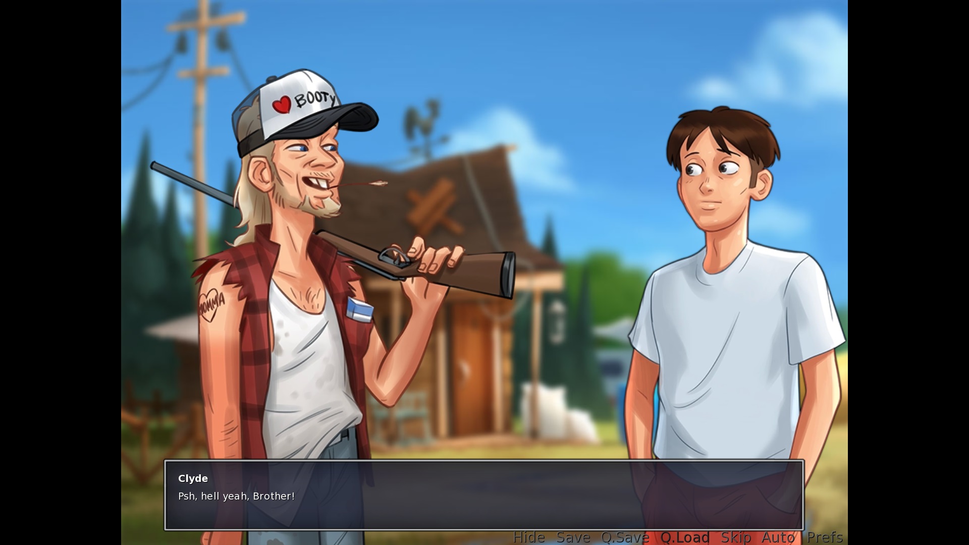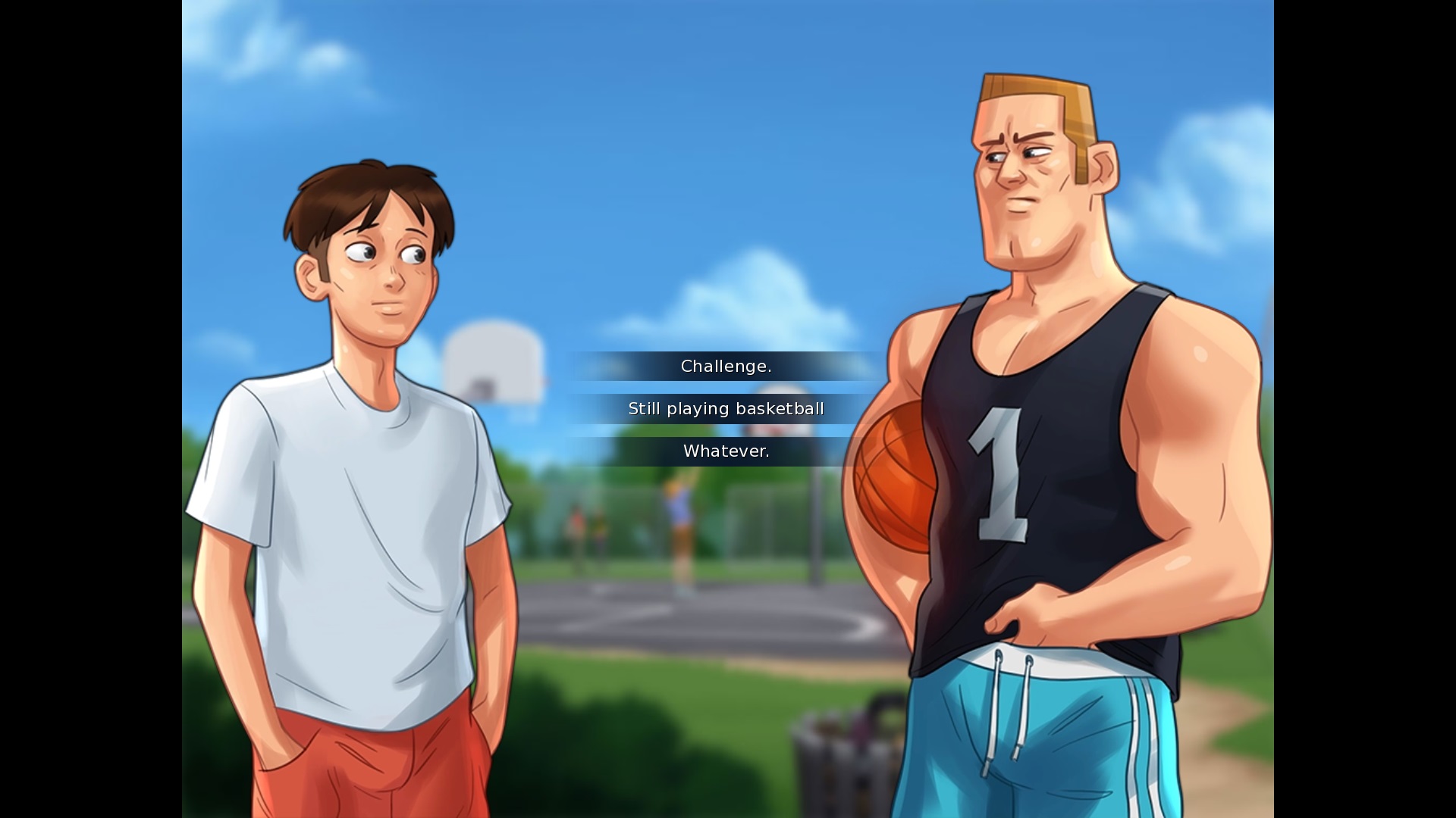 If a converation with Clyde near the shed, after saying "nevermind": "Psh, hell yeah, Brother!" > brother should be a lower case B Speaking with Missy and Becca at the Basketball Court: The top option needs a full stop like other conversation options in the game (even things of one word have a full stop at the end, see for example a daytime conversation with Debbie). Speaking with Dexter at the Basketball Court: The middle option needs a full stop at the end. Base Profile Screenshot 2019.07.11 - 18.03.11.83.jpg (262,757 bytes) |