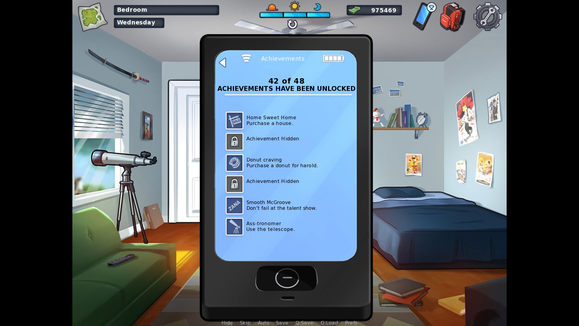 During the threesome with Grace and Odette. After switching to Odette, and then switching to Grace again: "Oh, I love watching you ass bounce on that dick!" change "you" > "your" When the MC is jerking off to Eve in his bed: "I want you see me!" > add "to" to make "I want you to see me!" The achievement description for Donut craving: "Purchase a donut for harold." > Harold should be with a capital H Base Profile Screenshot 2019.12.02 - 14.07.47.62.jpg (298,735 bytes) |