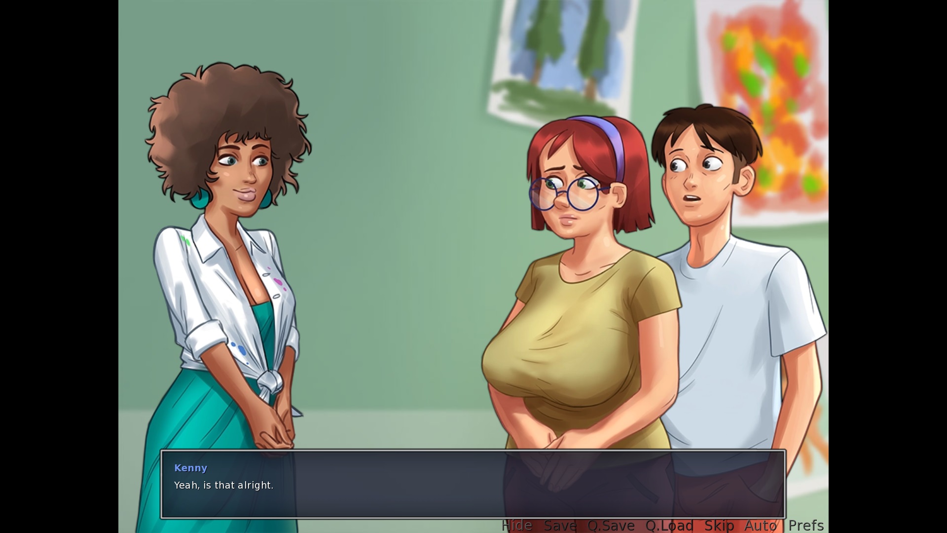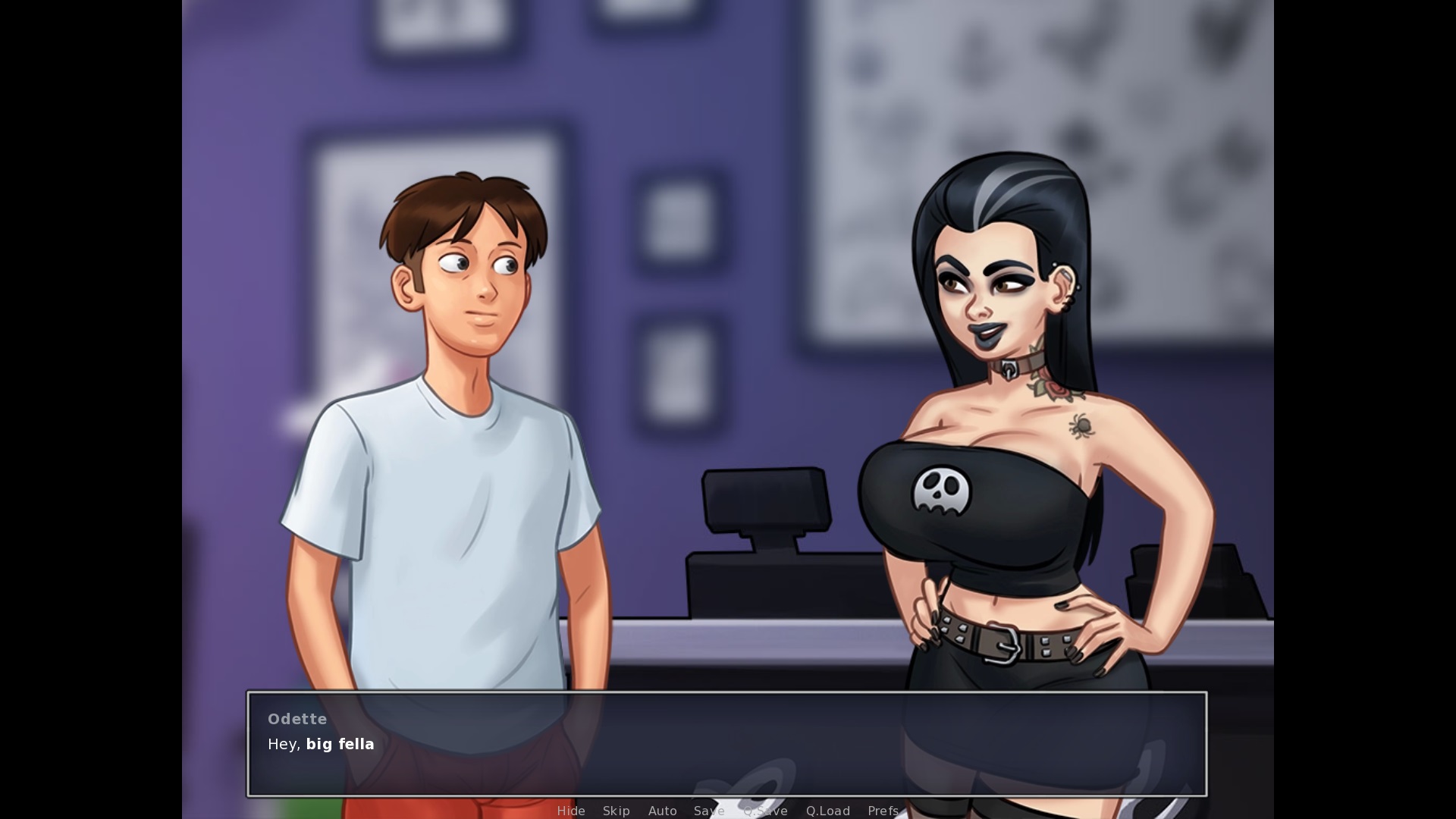 Grace is pregnant and kept the baby. After starting a conversation with her in the tatoo shop in the morning: "Hey, [MC] > needs a full stop at the end One of Jenny's nightly visits: The second option "Not tonight" needs a full stop at the end Sex with Jenny during one of her nightly visits (Jenny more submissive path): "You're gonna wake up, Debbie..." remove the comma, not needed in this case After cumming inside Jenny: "God damnit, [MC]!" > remove the space between "God" and "damnit", it's one word, so "Goddamnit". After Odette became pregnant and you had the initial talk after the first text, talk to her in the tatoo parlor: "Hey, big fella" > needs a full stop at the end |