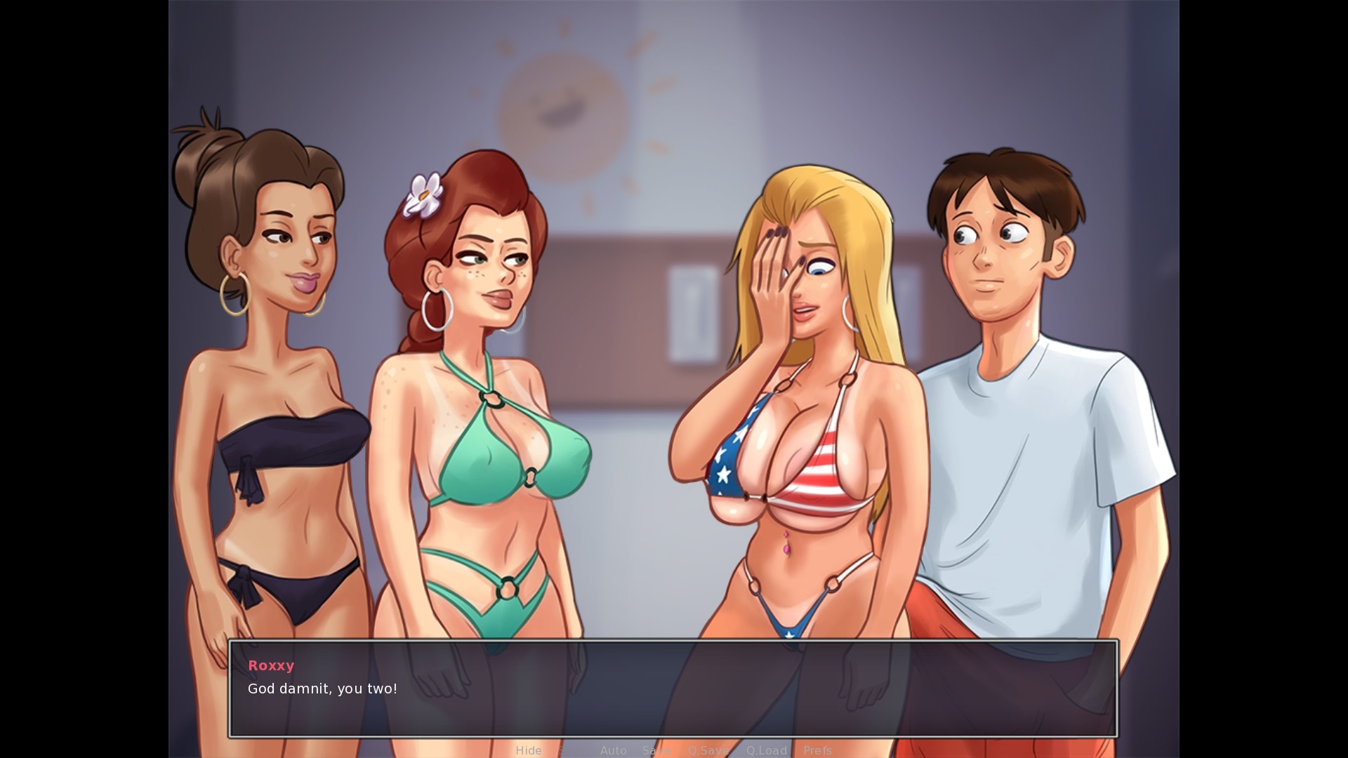When talking with Roxxy, Missy and Becca on the beach on a sunday evening (choose "What about a massage?"). Near the ending of the massage: "God damnit, you two!" > remove the space between "God" and "damnit", goddamnit is one word During spin the bottle on the beach (not the first time): "Just wait till it's my turn, [MC]!" there should be an apostrophe before till, as in 'till During the sex scene with Becca when she wins final spin: "AAhhh!!!! Please, please please!" > there should be another comma between the second and third please During the scene with Missy if she wins final spin: "Oh, crap. I'm sorry, Roxxy" > needs a full stop at the end Base Profile Screenshot 2019.12.02 - 18.33.35.23.jpg (284,798 bytes) |
