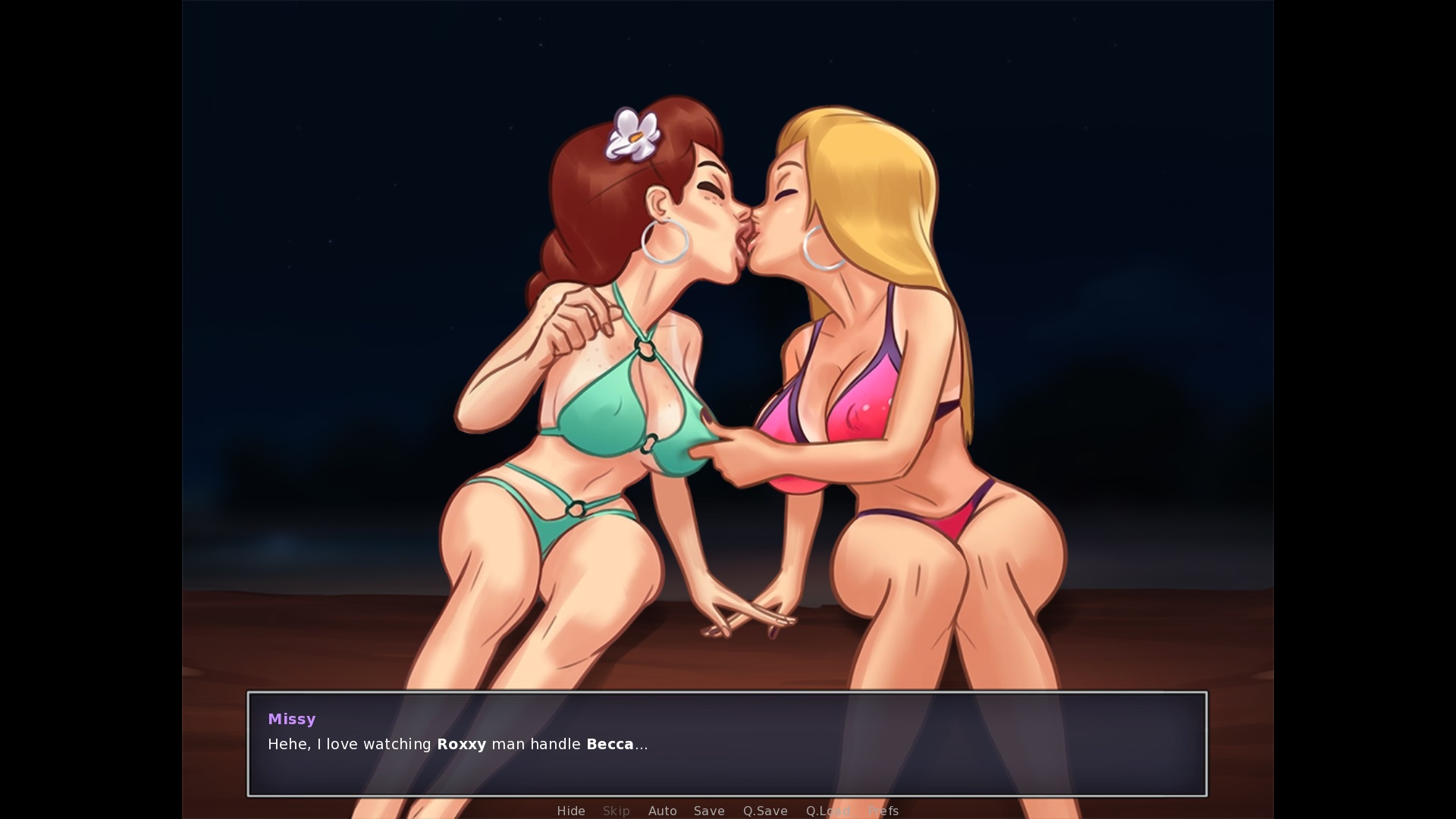 During the scene with Missy if she wins final spin: "I want you to fuck her till she's too tired to open her stupid mouth!" > add an apostrophe before till, like 'till During spin the bottle (not the first time): "Hehe, I love watching Roxxy man handle Becca..." > remove the space between "man" and "handle", manhandle is one word During spin the bottle (not the first time): "Cause she's usually such a stuck up bitch, you know?" > add an apostrophe before "Cause", like 'Cause |