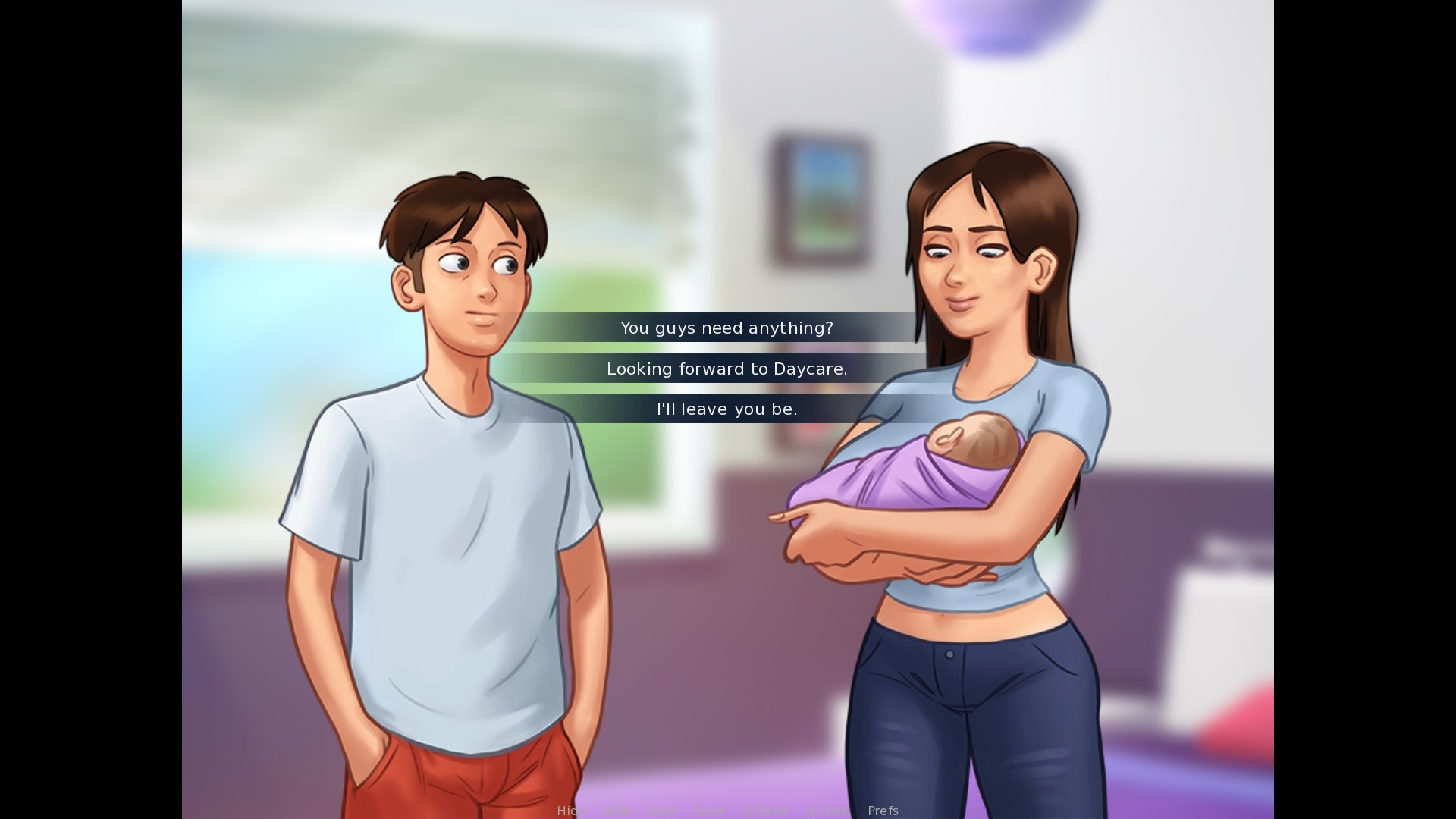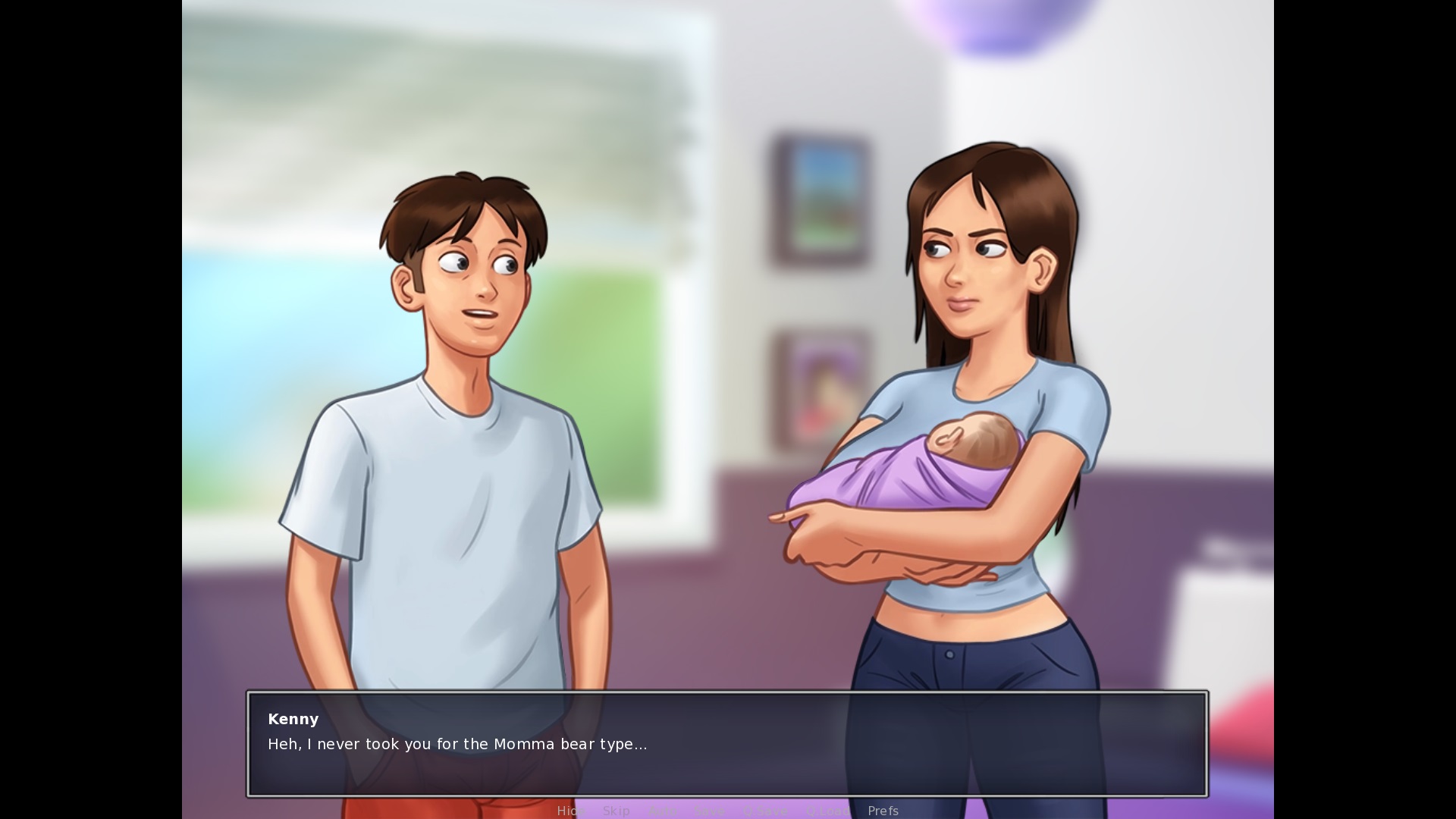 When the spin the bottle ends on the MC: "Wanna mke sure you all remember who's the Alpha Bitch here!" > alpha and bitch need lower cases Speaking with Jenny when she's pregnant, ask about Debbie annoying her: "You're like a daughter to her, afterall." > add a space between "after" and "all" as it's two words When speaking with Jenny when she has her baby in her arms: "Which is lucky because your Daddy is basically a bridge troll..." > daddy should be lower case "Say bye to Daddy..." > daddy lowes case "Bye bye, Daddy!" > daddy lower case "You definitely got your looks from your Mommy." > mommy should be lower case Option "Looking forward to Daycare." > daycare should be lower case, and the full stop needs to be a question mark In the above situation, choose looking forward to daycare: "Heh, I never took you for the Momma bear type..." > momma should be lower case |