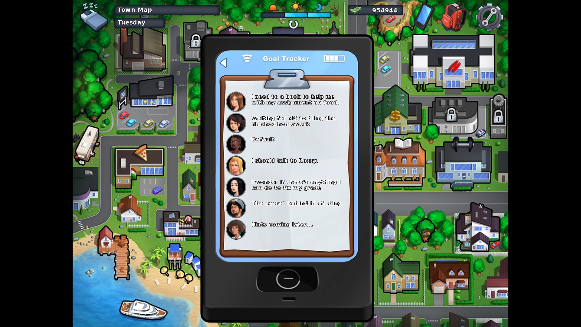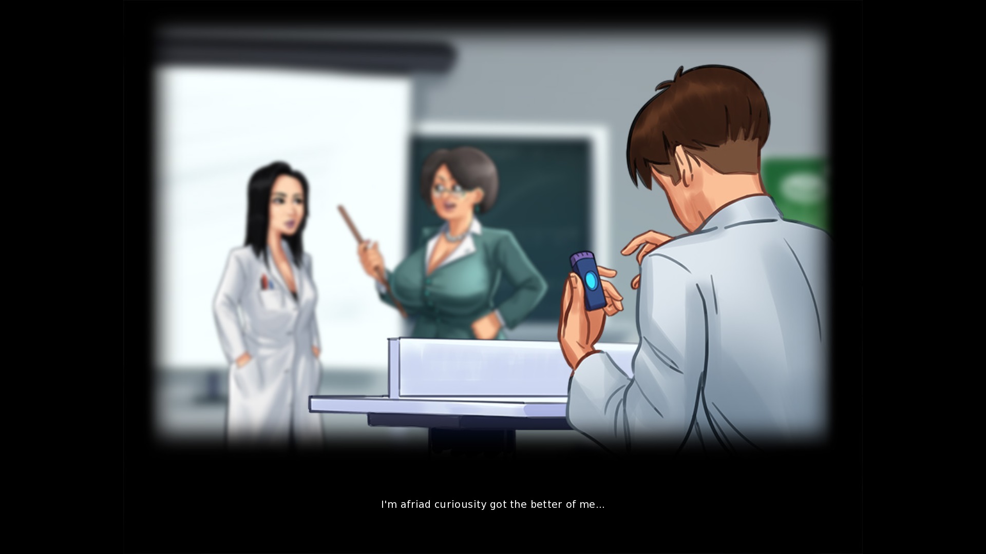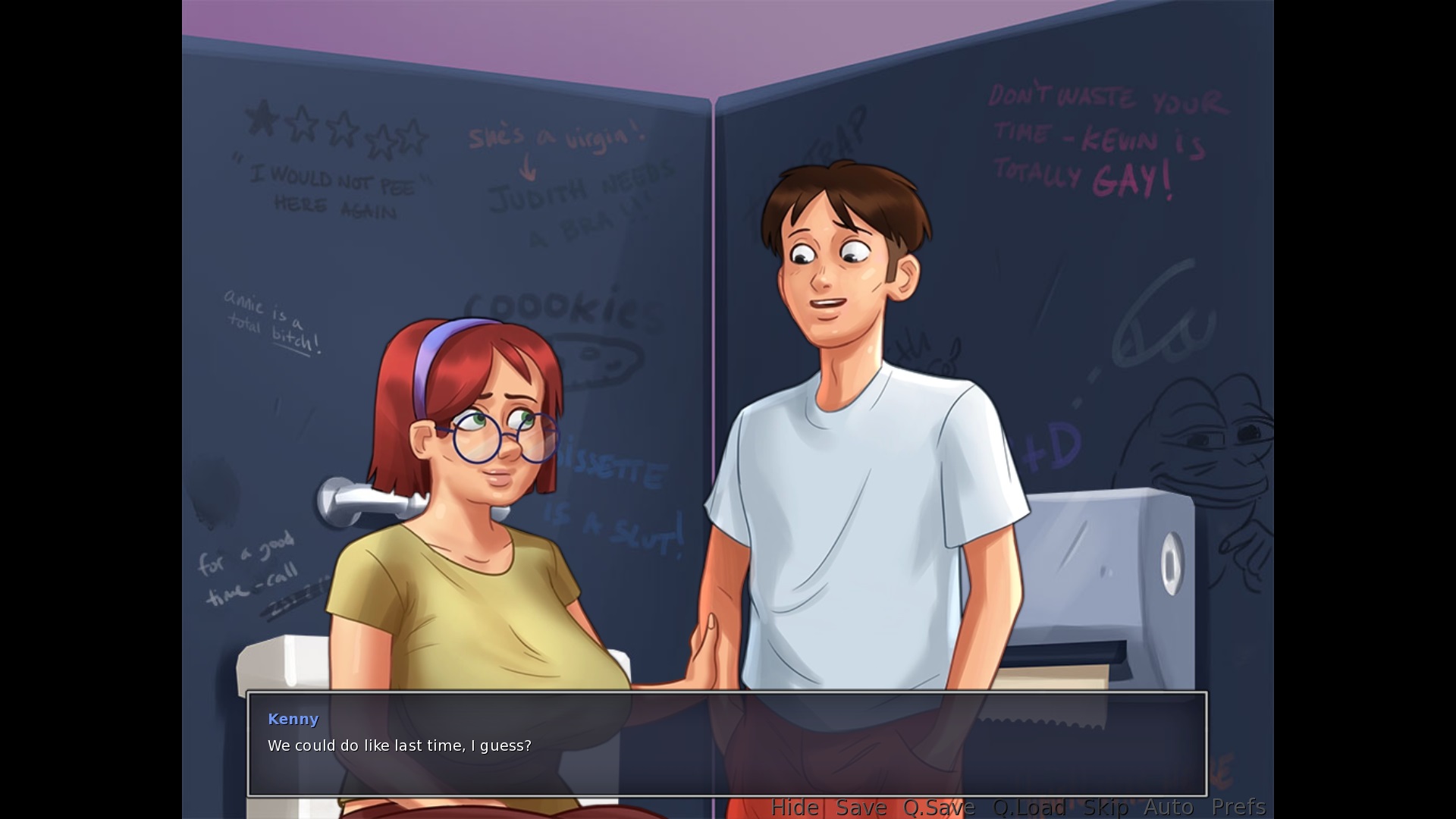 While on the phone looking at a hint of Ms. Bissette: "I need to a book to help me with my assignment on food." > add "find", or "get" or "obtain", like "I need to find a book" When trying to take Debbie's panties when you don't need them: "( I have no use for them right now ) > add a full stop after now During the fun with Judith the MC says: "We could do like last time, I guess?" > Incorrect sentence. Maybe add "the same" and change "like" to "as", so "We could do the same as last time, I guess?" Keeping it like this is not correct Base Profile Screenshot 2019.05.08 - 23.49.05.59.jpg (505,161 bytes) |