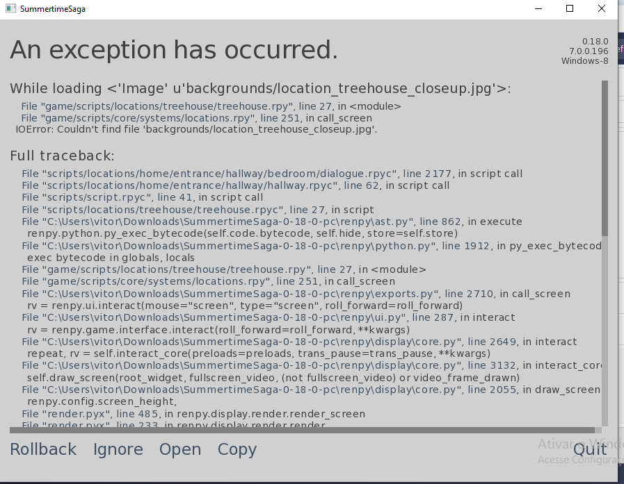 | Description | every time I leave the tree house there is a error | ||||
