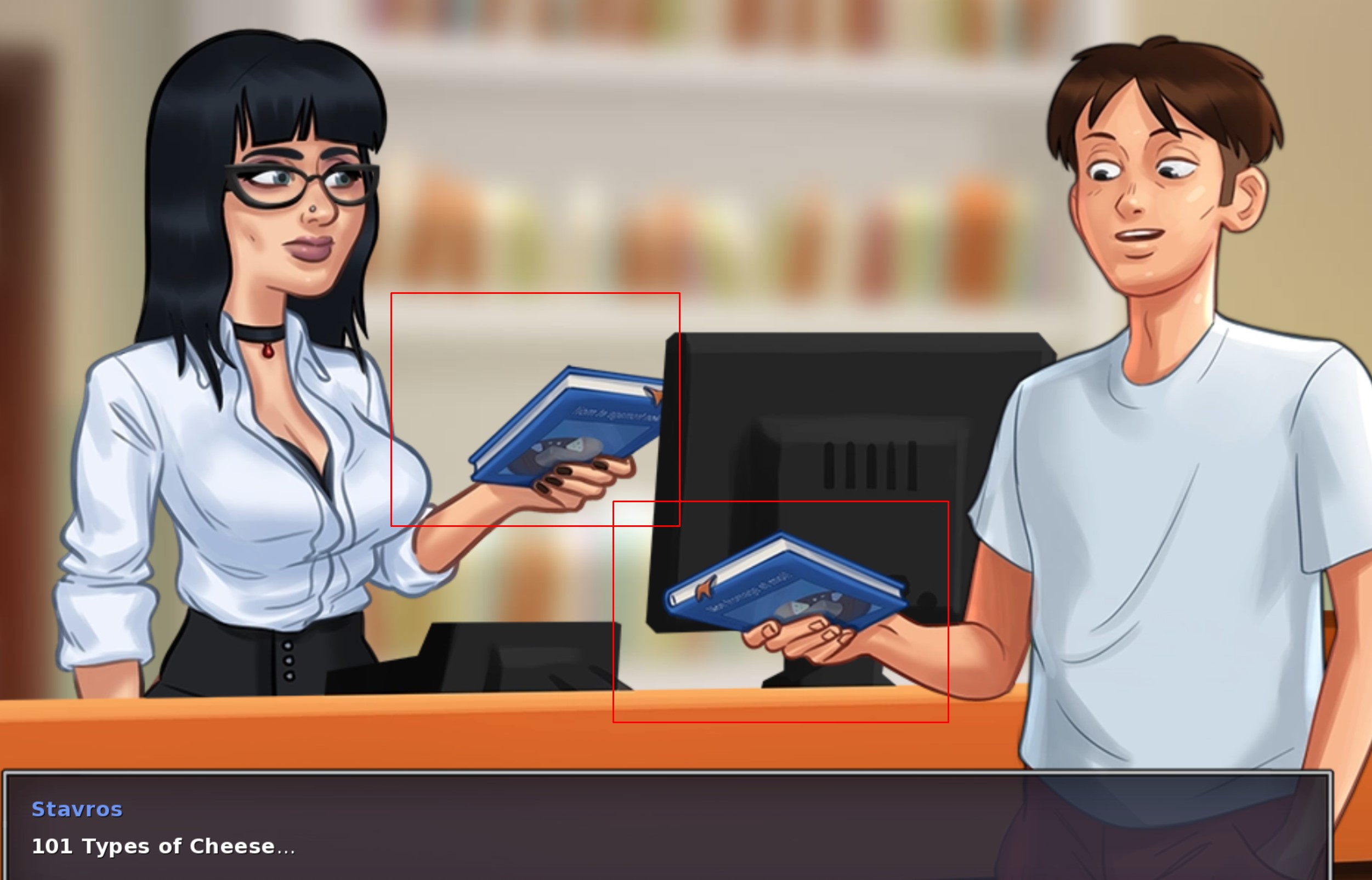 | Description | when you return the books the librarian sent you to get for the book about cheese, when she hands it to the MC the librarian is still holding it at the same time as the MC | ||||