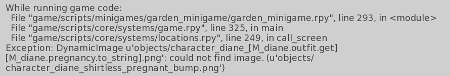 Exception: DynamicImage u'characters/diane/layeredimage/diane_sex_back_pre_talk_[M_diane.outfit.get].png': could not find image. (u'characters/diane/layeredimage/diane_sex_back_pre_talk_shirtless.png')