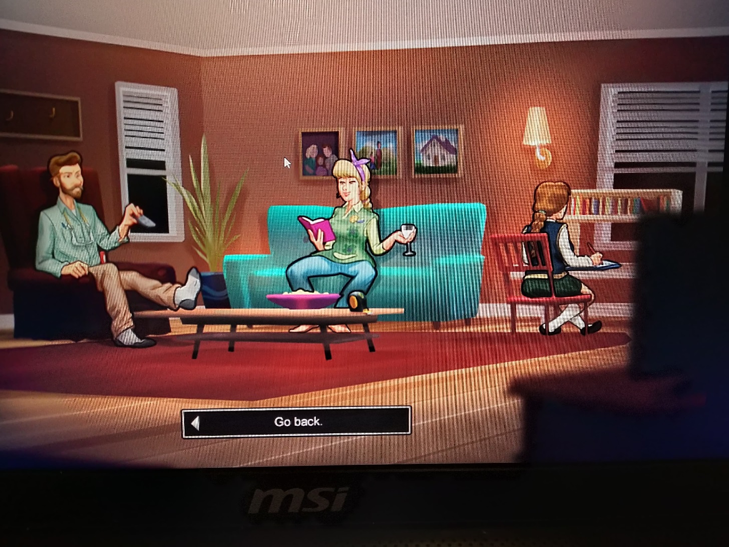 | Description | At night, at Annie's house when talking to her the text is from the school at daytime. | ||||