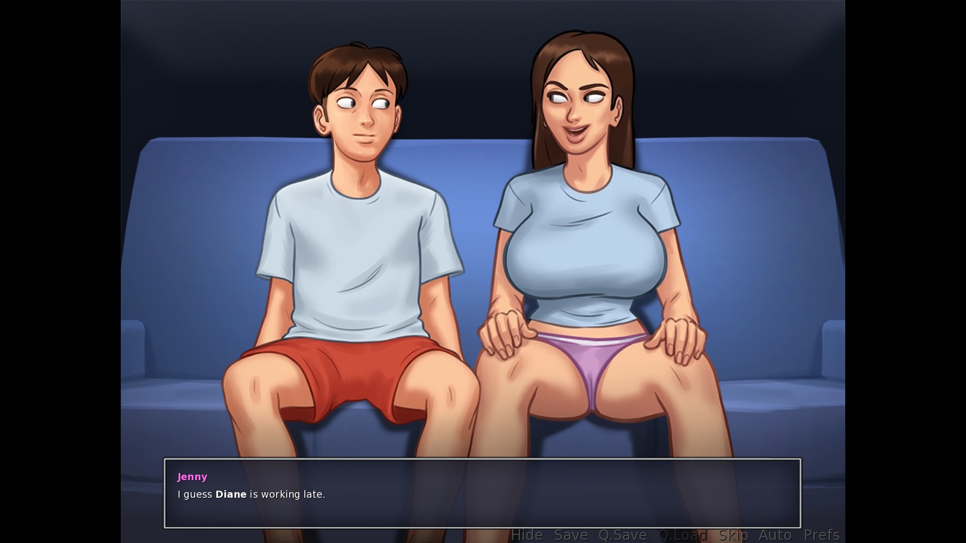 | Description | When having the 'girlfriend experience' with Jenny and 'staying in' they move downstairs to the TV. Jenny then says "I guess Diane is working late." even though Diane is in the bedroom of Debbie just next door waiting for a possible threesome. After they kiss, Jenny decides to go upstairs. When the MC has to go after her, suddenly Diane is sitting at the couch. Not sure how this situation is supposed to be (I guess Jenny might not know Diane is in Debbie's room), but Debbie appearing right after you move off the couch is pretty weird. That would mean she'd to catch the MC and Jenny together. | ||||