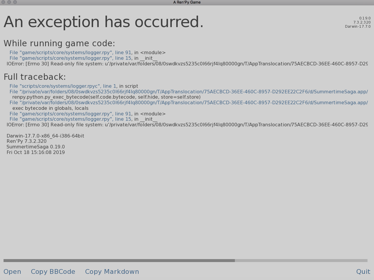 | Summary | 0002177: Just downloaded 0.19 for MacOS and it crashed | ||||