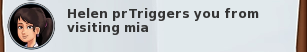 | Description | Text for the hints say "Helen prTriggers you from visiting mia" | ||||