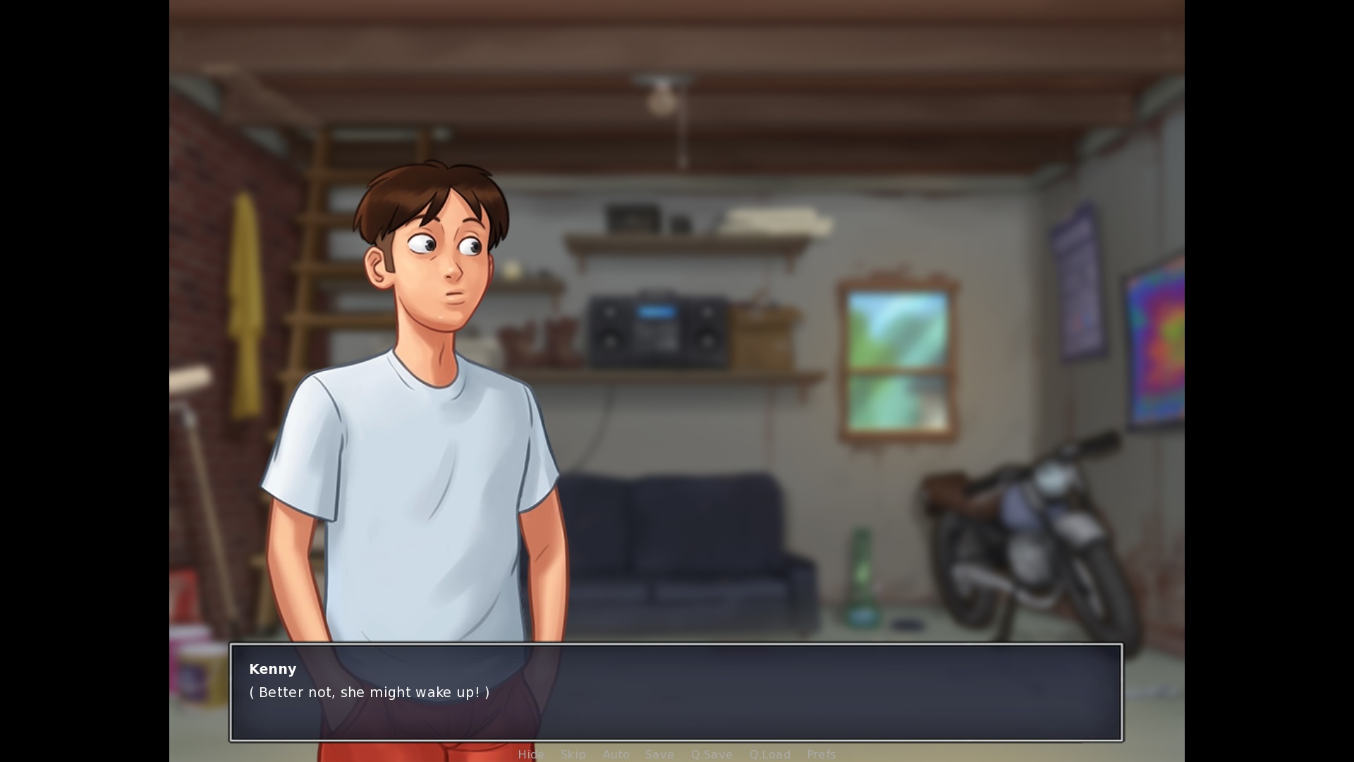 | Description | During progression in Eve route Odette is not sleeping any more in the morning on the couch in the garage, but instead just sitting there. Interacting with her panties however still results in the MC thinking: ( Better not, she might wake up! ) Which is factually incorrect as she's wide awake. | ||||