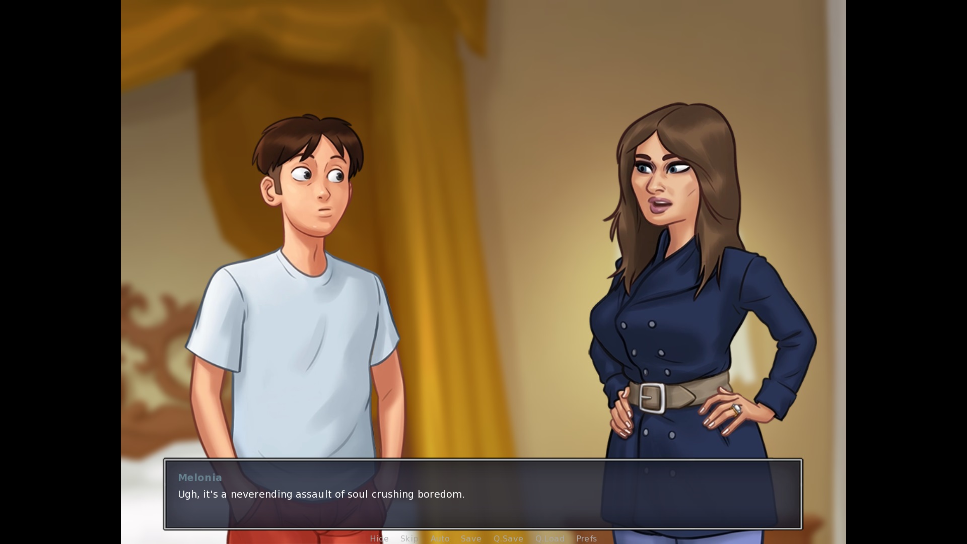 Talking with Melonia in her bedroom: "Ugh, it's a neverending assault of soul crushing boredom." Soul crushing should have a hypen in between, like "soul-crushing" Talking with Iwanka in the jacuzzi in the morning: "Daddy will kill you if he see's you peeping on me." remove the aphostrophe in see's, should be "sees" Talking with Debbie in the kitchen: Option "Watch a Movie." should have a lower case M for movie Option "Practice Kissing" should have a lower K for kissing, and a full stop at the end During practicing kissing with Debbie: "Go get em, sweetie!" add an aphostrophe before em 7.jpg (315,552 bytes) |