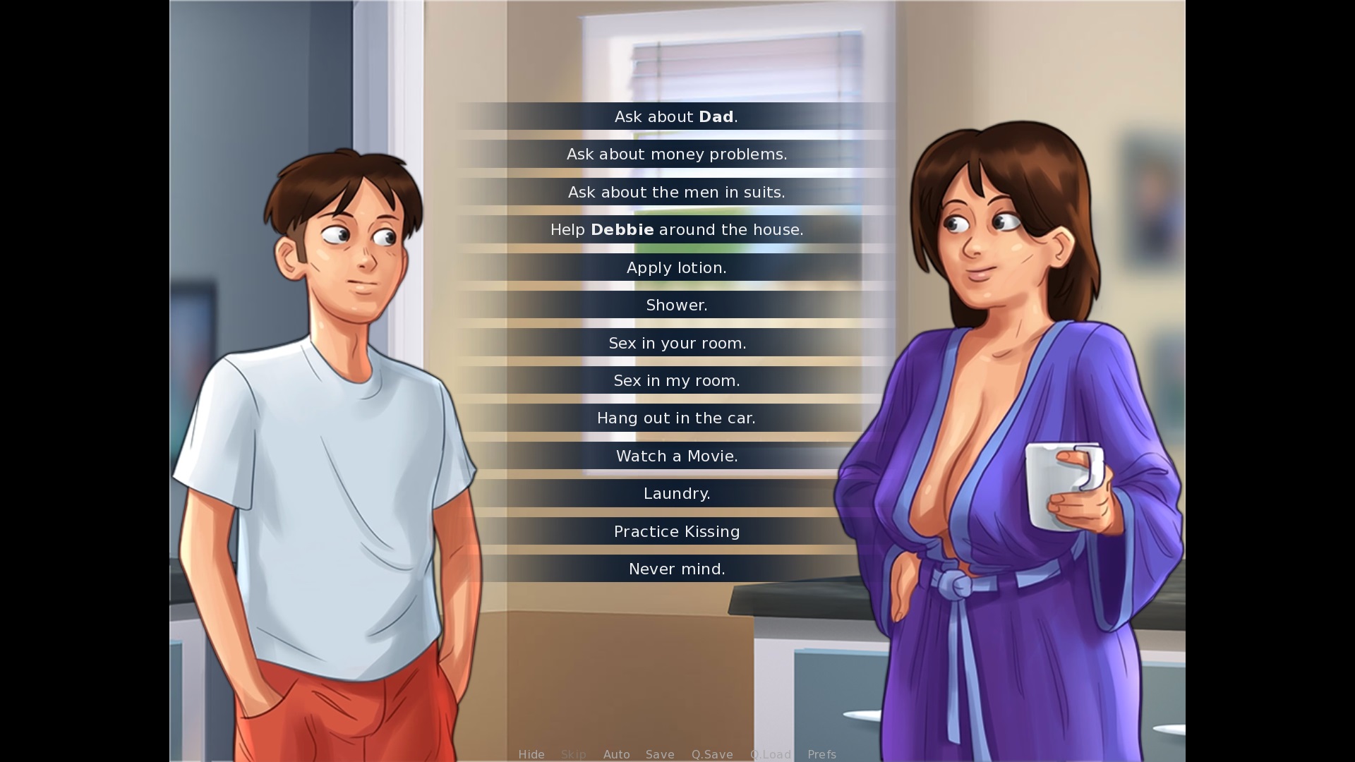 During fooling around with Jenny in her room you get two options: The second option, "Not Today.", should have a lower case T for today Interacting with pussywillow: "Aww, snuggles for Kitty!" Kitty should have a lower case K Item description of Lactation and Me: "A very "in-depth" guide on how to breed like a Bull!" Bull should have lower case b |