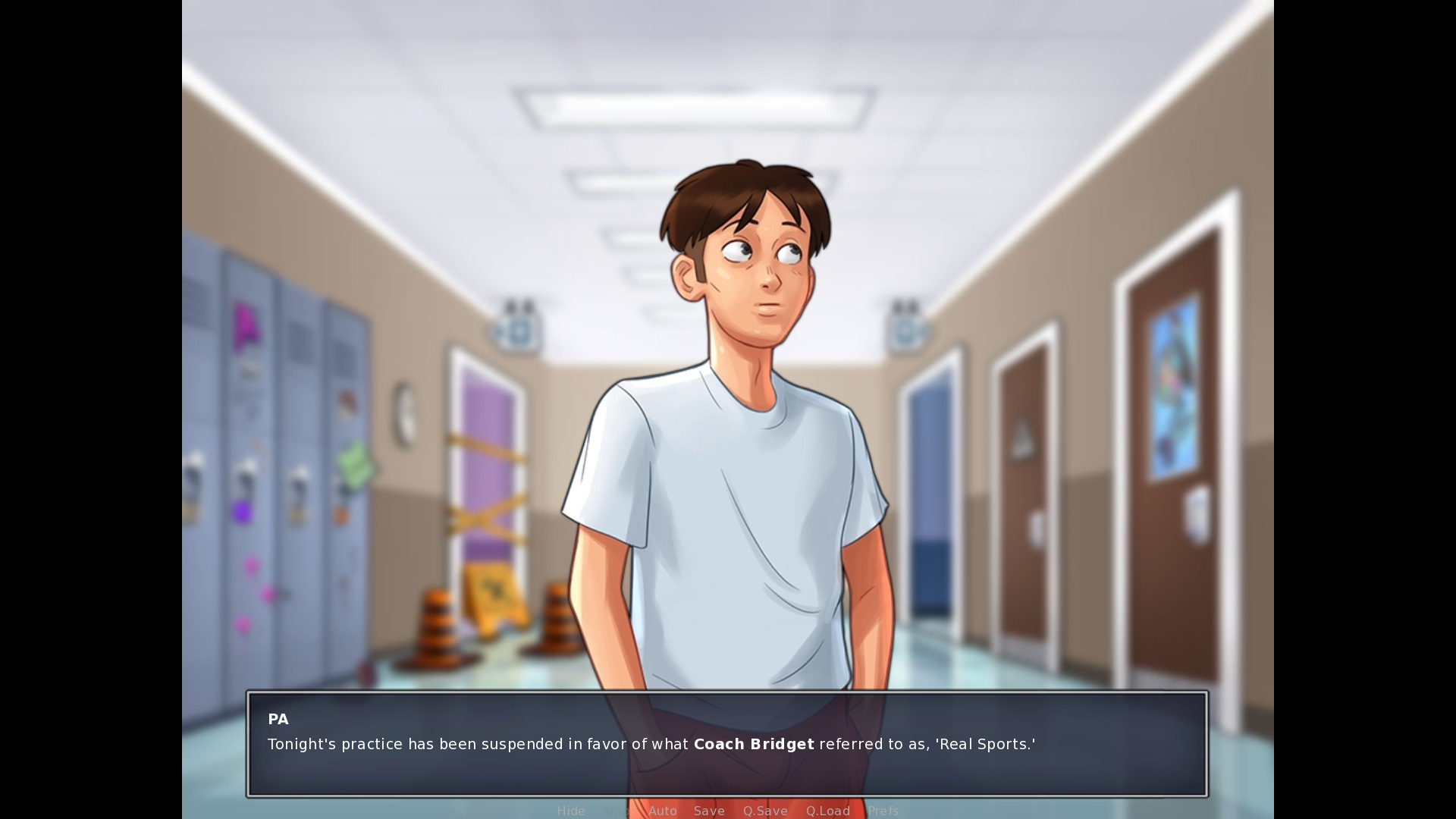 Talking with Tony and Maria in the pizzeria: the coversation option "Pizza Order." should have a lower case O for order Same conversation after choosing to order a pizza: The first option "Veggie Pizza." should have a lower case P for pizza Talking with Roxxy in French class after her route completion: The third option, "I'll see you tonight" needs a full stop at the end PA announcement in school: "Tonight's practice has been suspended in favor of what Coach Bridget referred to as, 'Real Sports.'" Real and Sports need to have a lower case R and S. Or at least the S of sports |