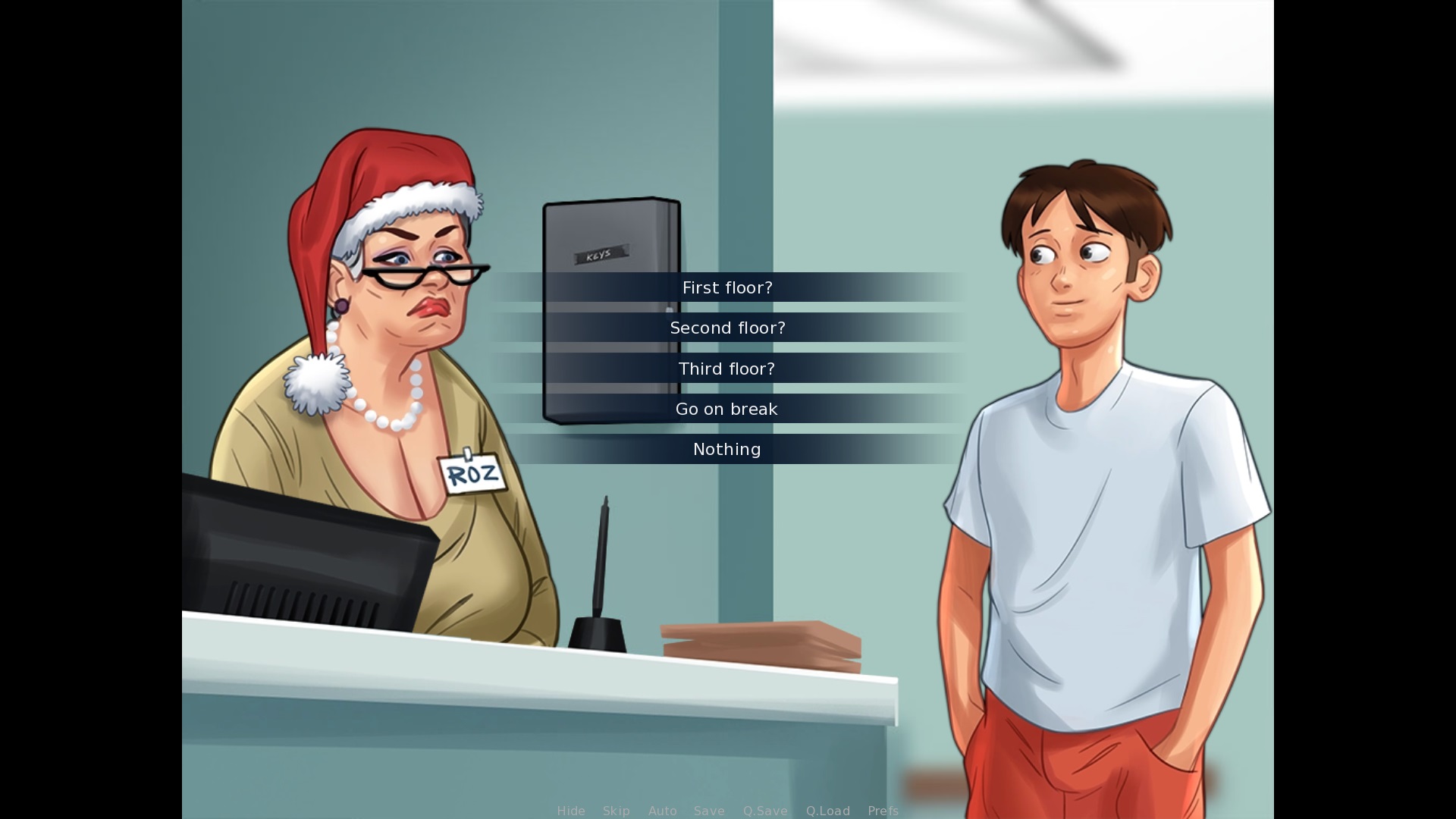 Talking to Roz in the hospital on the 1st floor: The fourth option, "Go on break" needs a full stop on the end or a question mark, and needs "a" added between "on" and "break" The fifth option, "Nothing", needs a full stop at the end This is the last one I'll add to this report. |