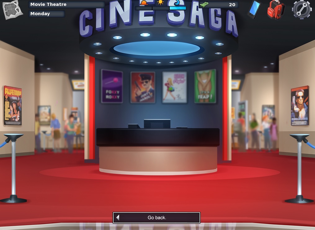 | Description | 1st time player clicks cinema, there is a dialoge scene between Kassy, Bubbles and Lily. in the end of dialoge Bubbles offer MC to buy tickets. That dialoge can also be triggerd in evening time, but Bubbles dissapears after he offers MC to buy tickets, cause Bubbles put to work there in mornings and noons only, and his button supposed to be disabled in evenings. -It may be solved by adding a condition of time, to trigger dialoge mornings and noons only. -Otherwise, Bubbles can be put to work all day long, like Lily, Ivy or others (hope this). Moreover, it will be useful in future dating system for datings with late films watching. BTW, To avoid troubles after evening film or any other evening MALL-activity, that possibly requires time rewind+1 ending, MC (alone or with his pair) can be immideately put to Mall Frontyard location (for dialoge with his company for exmpl), cause he cant be at MALL at night. Now, when time inside MALL set to night by console, game uses dayversion of MAll interior backgrounds, and MC doesnt go out before some object be clicked. He says "it is getting late, gotta go home", and only after that he appeares in frontyard. | ||||