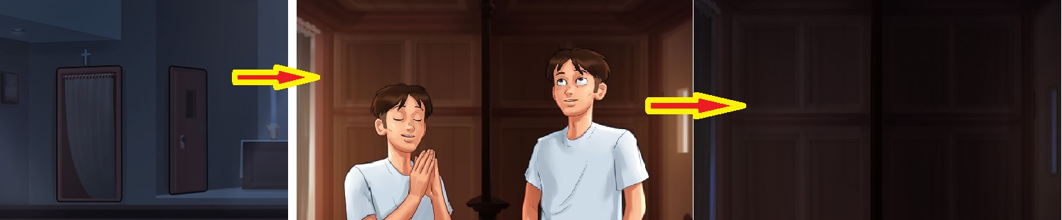 - When in the evenings player enters confessional booth in a church from any side and get one of 2 appropriate scenes (like he is praying)