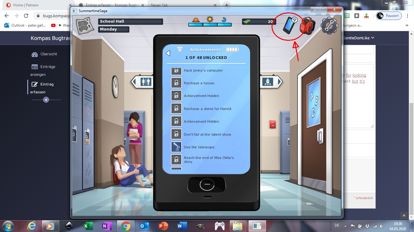 After Intro I collected the cookies and used the telescope. I received an new archievement (symbol above smartphone) for looking trough the telescope. Now after playing 30min. the symbol still there. I've clicked many time at the achivements and back but it's still there and doesn't disapear.
