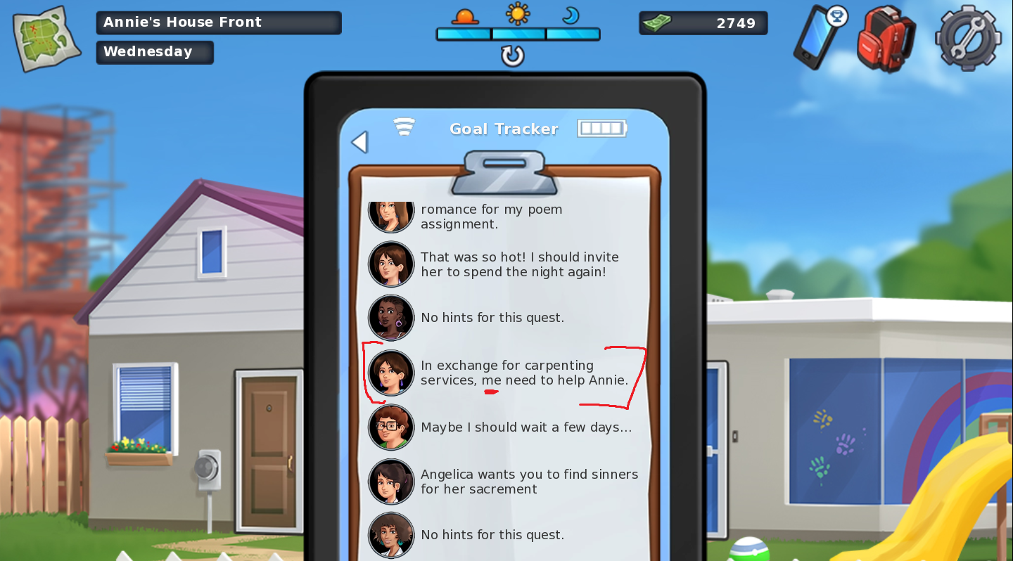 | Description | During the mission in which you talk to Diane to get assistance from the carpenter, the phone says "In exchange for carpenting services, me need to help Annie." the "me should be an "I" | ||||