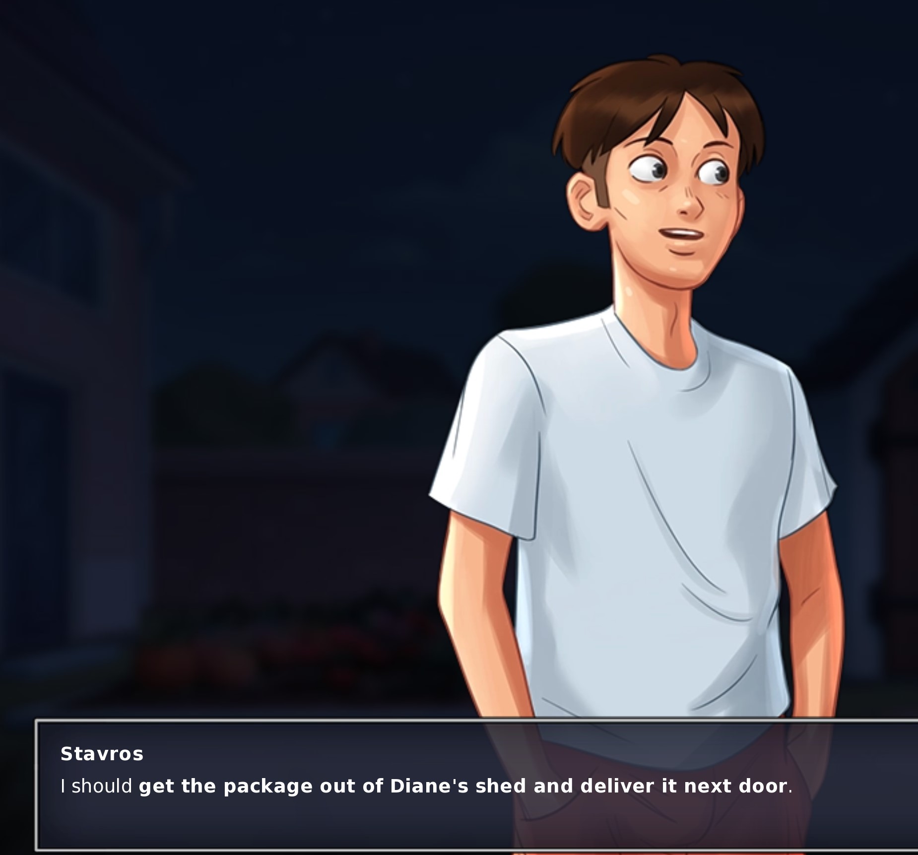 | Description | progressed to debbie's route until she got her evening in the pool with diane. went to the bathroom get the towel. got out of the house into diane's house. go to the garden click on shed, MC says about diane sleeping, and cannot work the garden click on diane house, he sais he should let her rest and that he has a delivery to make, followed by a dialog to get the delivery out of the shed. I have not yet got the delivery for either the daycare or the school so at this point the MC should not know anything about a delivery Attached is 2 screenshots along with a save I am using version 0.20.1 Possible solution to this would be to prevent the MC from going out of the house and reminding him about him having to get the towel to debbie. | ||||