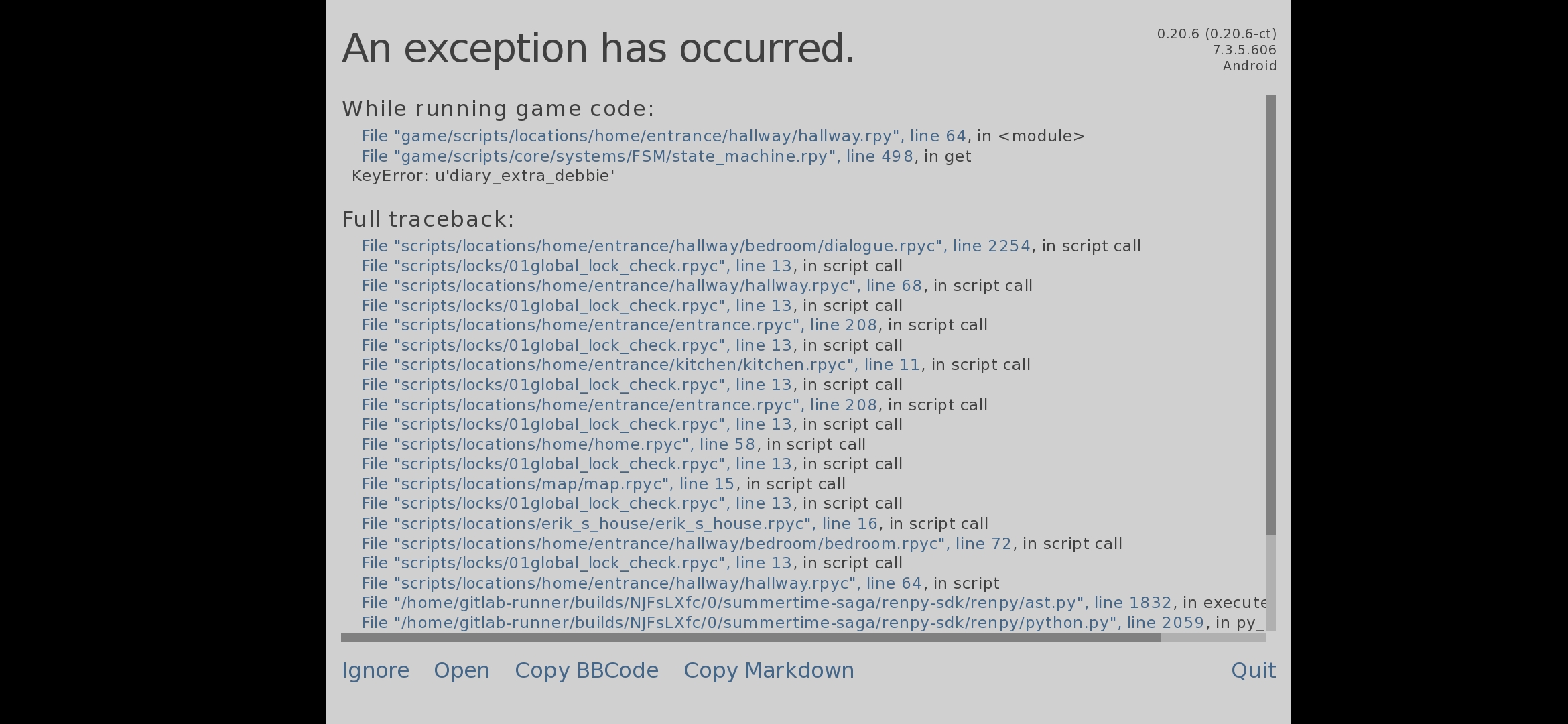 | Description | Bring up key error: u'diary_extra_debbie on version 20.6 | ||||