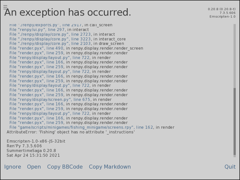 | Summary | 0003214: When I went for fishing, the game crash | ||||