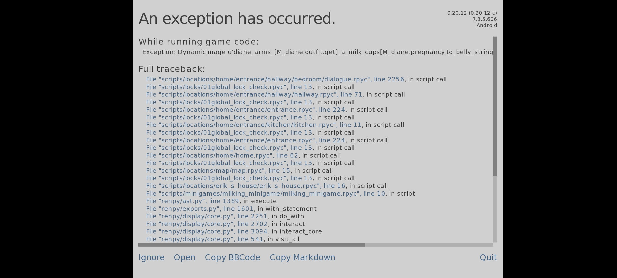 | Summary | 0003348: Trying to Pump Dianna in the barn crashes the game | ||||