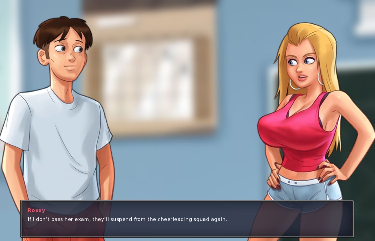 | Description | The hint list says Roxy still needs to pass her exam. When MC arrives at the French class, Roxy and Bisset are having a conversation. When it is MC's turn to talk to Roxy she says the line I have included in the screenshot below. The line should read "they'll suspend ME from" instead of they'll suspend from. | ||||