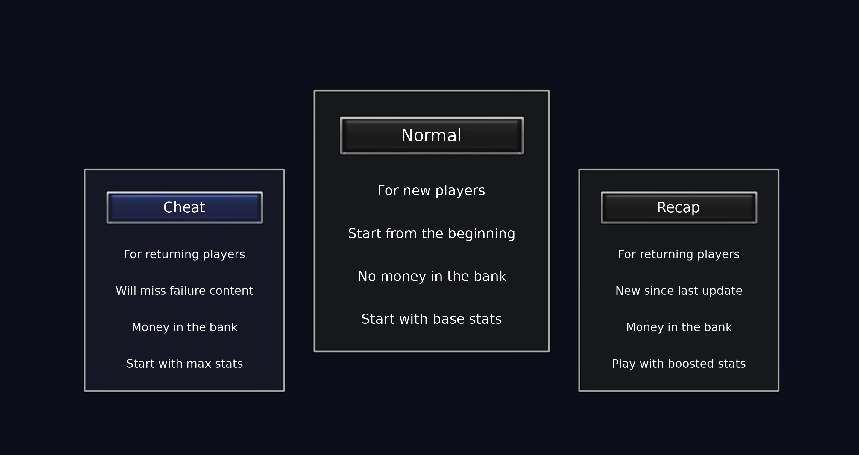 | Description | I'm not sure if this it's supposed to be this way, however only Cheat Mode is selectable, Normal mode is greyed out and cannot be selected. | ||||