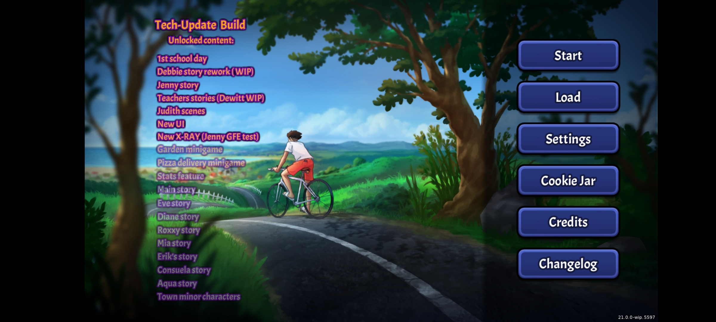 The preview builds (21.x) are intended for those that wish to see the progress being made in the new codebase that began as part of the tech update and currently features all of Jenny's content, most of the teacher routes (excluding Couch Bridget), and the first 15 quests of Debbie's reworked route. If you want to play character routes and stories that have not yet been rebuilt then you want the stable version (0.20.16) instead. Stable is the final build from before work on the tech update began, and so it currently contains much more story content than the Preview. |
