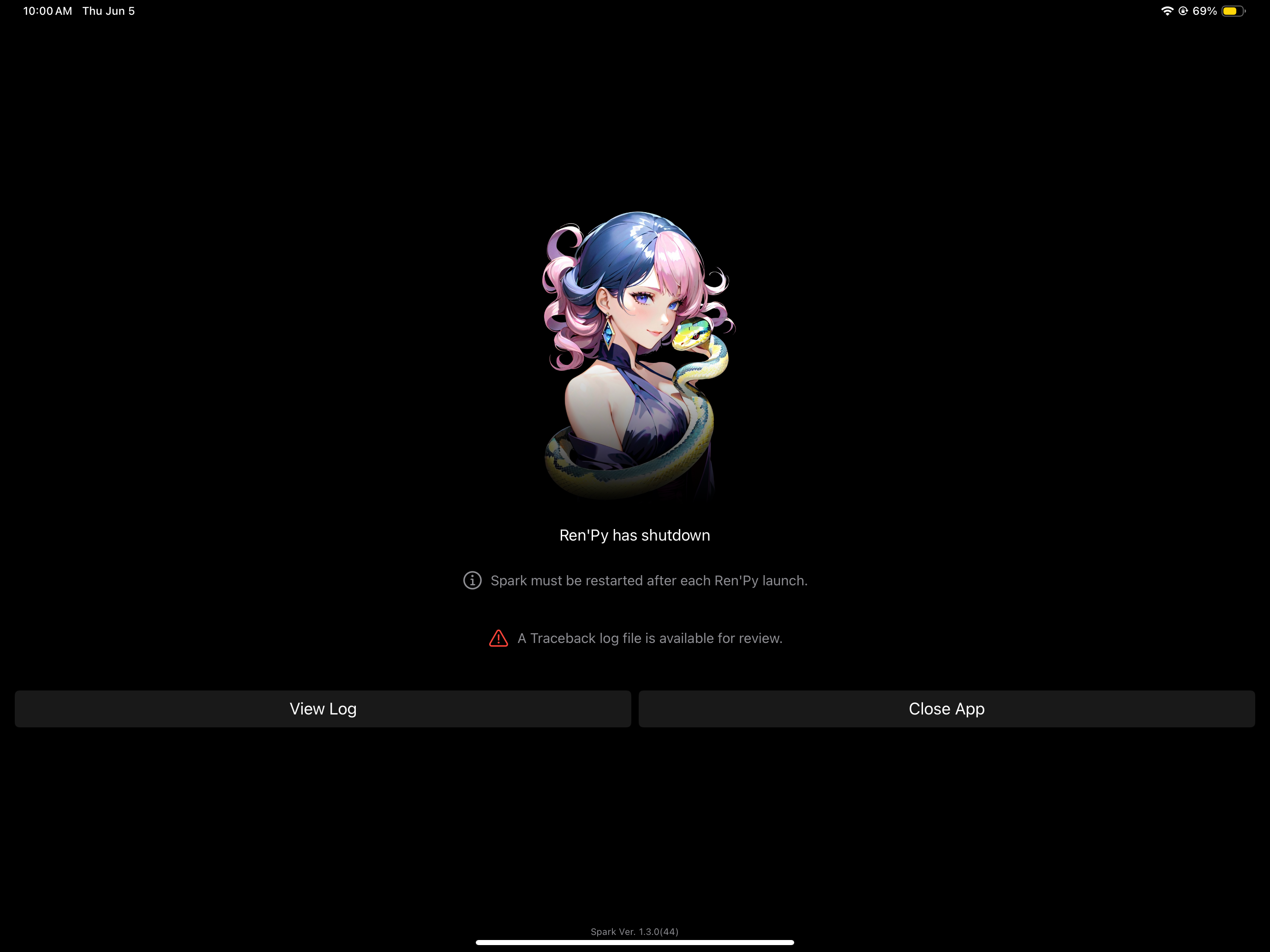 | Description | Hello Team, I use an iPad to play the game. There is a way to in iPad which I came to know recently. There a paid app called “Spark” which use ren’py to open the game. Fo this app we can download any version we want apart from Mac dmg. I have downloaded window version. But couldn’t able to play it. In the beginning I thought the Spark app fault but many different games in many versions are running apart from the game I love which is summertime saga. I am attach the error and log for this. Please I hope you will able to find a way to fix this problem. Thanks. | ||||