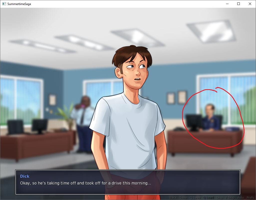 | Description | After speaking to Earl and Yumi about where Harold is during MC's thought process before checking desk Harold appears blurred in the background. | ||||