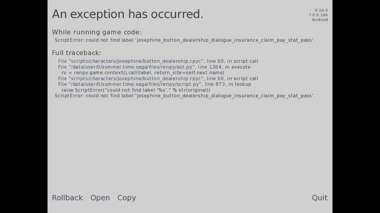 | Summary | 0000515: Paying moms car insurance crashes the game | ||||
