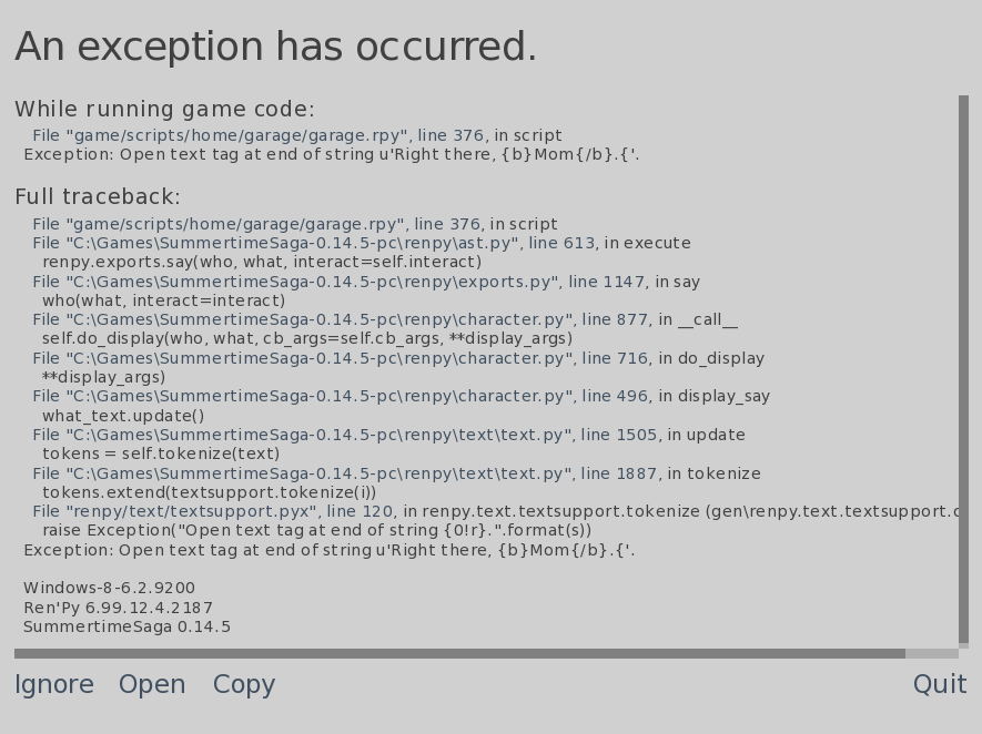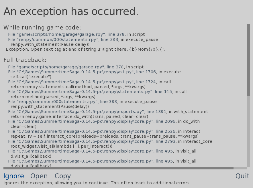 | Summary | 0000084: Error Screen During blowjob in the car animation | ||||